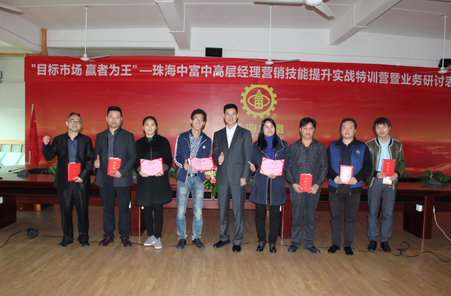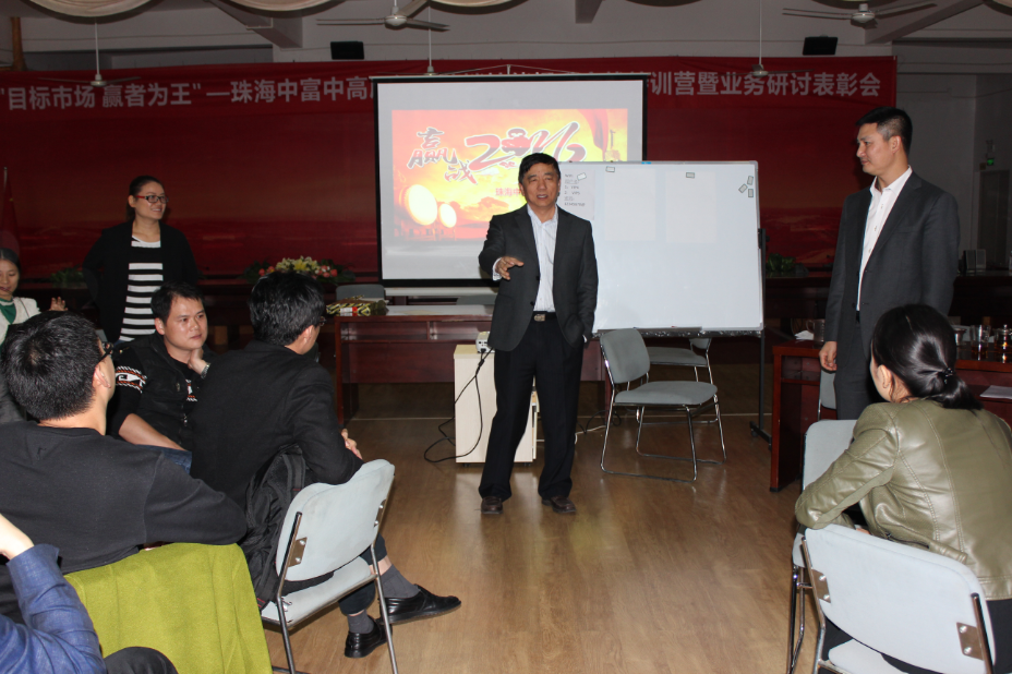 2015年12月27日,公司利用開設“珠海中富‘目標市場、贏者為王’中高層營銷技能提升特訓營”的機會,再次在支持中心舉辦了“2016年業(yè)務研討表彰會”,會議由人力資源部主持,董事長兼總經(jīng)理宋建明先生、總經(jīng)理特別助理吳逢彬先生、各職能部門總監(jiān)、各區(qū)總監(jiān)、各工廠廠長、各區(qū)財務總監(jiān)、優(yōu)秀員工代表、有獎征文獲獎者代表共70人參加了會議;本次會議旨在明確公司2016年業(yè)務目標、分享實現(xiàn)目標的推進方案、落實廠長對工廠業(yè)務的責任、樹標桿立榜樣、共商未來關鍵改善行動措施。會議主要有如下內(nèi)容: