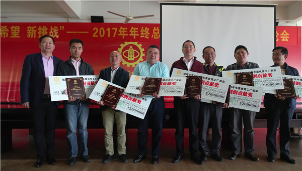 為了增強(qiáng)公司的凝聚力,表彰先進(jìn),樹(shù)立楷模,傳遞正能量,公司決定評(píng)選和表彰2017年度優(yōu)秀工廠、特殊貢獻(xiàn)先進(jìn)個(gè)人、優(yōu)秀員工和技術(shù)標(biāo)兵。獲獎(jiǎng)的工廠廠長(zhǎng)分別向與會(huì)者分享了成功經(jīng)驗(yàn)。